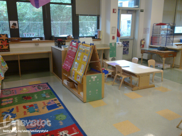 Класс разбит на 2 секции, одна секция для беби, там детки до 2 лет, и вторая огромная секция для деток от 2 до 4 лет, + есть комната для деток 5 лет, те кто уже ходят в школу, но в сад приходят как на продленку, пока родители учатся.