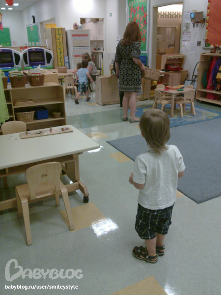 Реальный сад начнется 10 сент, с 3 до 8 вечера. Это время моих занятий. И как раз в это время уже мало деток там находится, что думаю будет проще для Стивена.