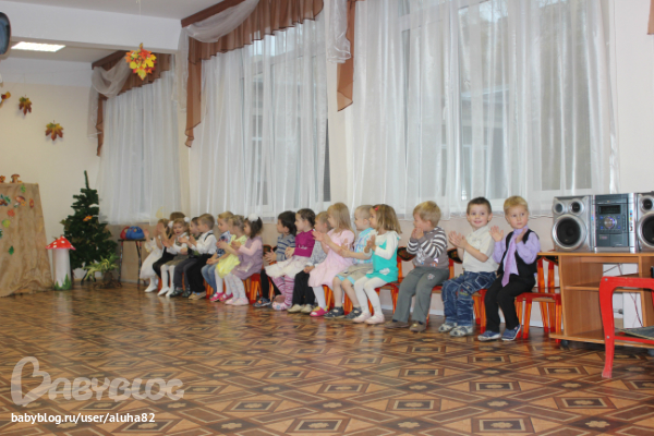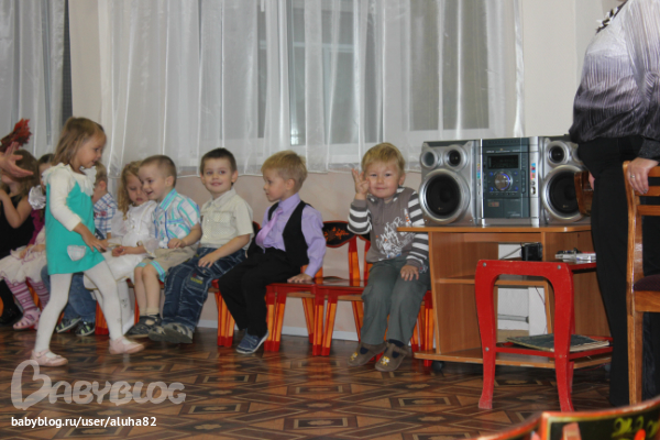 Даже когда на стульчике с другими детишками сидел, все мне воздушные поцелуйчики слал. К папочке к нашему ему было не подойти, поэтому все нежности достались мне одной. .