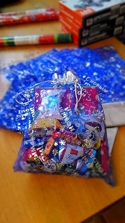 Я первый год в РК, и как-то все у нас скомкано получилось. Купила наборы киндер и магнитный конструктор и все в подарочные пакеты упаковала. В следующем году, если останусь, буду заранее готовить подарки.