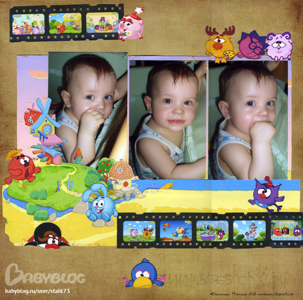 Давно хотела сделать страницу с любимыми мультфильмами сыночка. Случай подтолкнул к реализации своих планов. Страница 30х30 см. Оговариваю: страница не цифровая :-)