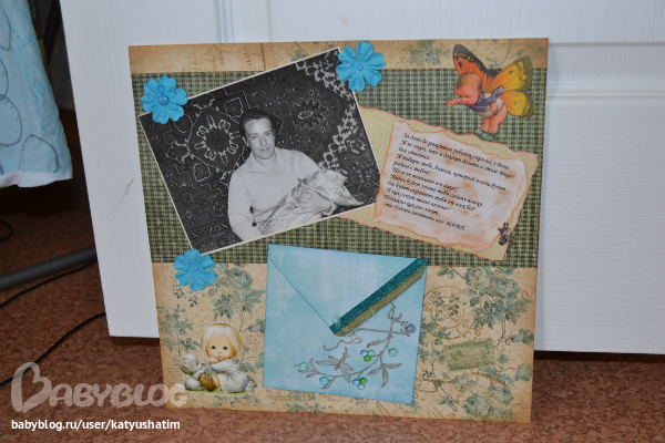 Теплые странички получаются:) А страничку с проводами в армию, мне кажется, можно оформить в тематике вокзала, рельсов, поезда, можно в качестве декора билетики использовать, фрагменты письма, конверта, марки (если осматривать саму тему армии).