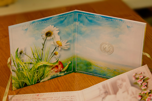 как здорово вышло. Молодец, Алина! А ленточки для завязывания куда вклеиваются? между двумя листиками картона? тебе прям в типографии ее вклеивают?