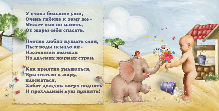 мне нравится первый вариант больше .Хочется добавить тени ,у бабочек не у всех есть тени с лева в низу .У колодца на земле нет тени ,и у малыша да и у ведра не понятно что с тенью. Но работа хорошая подправить чуток тени и отличный разворот .