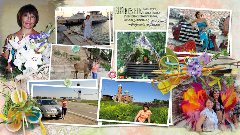 Законченные проекты (Скрап-альбомы, календари и пр.)Точнее за 2 ночера))) Времени было мало, фото были плачевного качества (скачанные с соц.сетей). Вроде бы и отказаться, сказать, что это нереально: огород, дети маленькие, и так далее... но не могу отказать знакомым в помощи. Воспользовалась готовыми кластерами, использовала их много, чтобы качество фоток разбавить. В итоге, вот что получилось. Строго не судите, самой не все нравится)