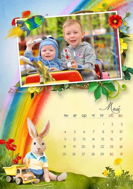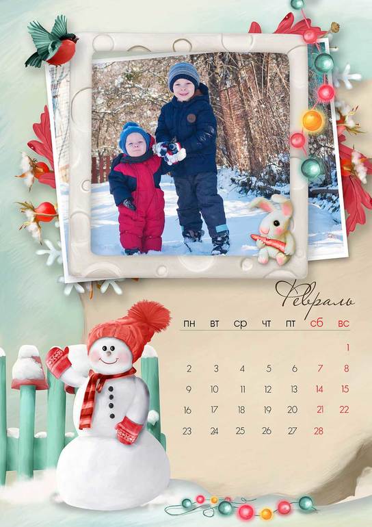 Замечательный календарь получился. Мне вот своих деток не удается вдвоем хорошо сфотографировать.Я пару раз пыталась, но они такие верткие, что все смазанное получается. А у вас очень удачные фото вдвоем.