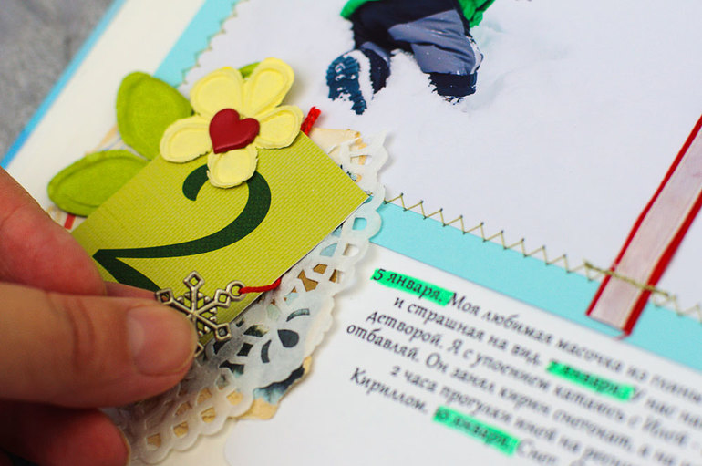 Из украшений - бумажные цветы (спасибо Ксюше за конфетку!), железная подвеска снежинка, салфетка, прошивки. Сетка от Натали.