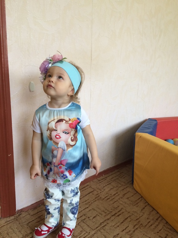 Нам 1,9..брала р.2, туничка сидит отлично, маечка очень нежная, штанишки к сожалению велики в попке)). Мари, спасибо за нашу красоту!