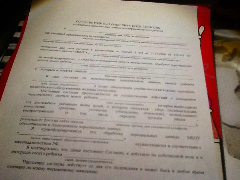 В этом варианте мне не нравится строчка "размещать фото ребёнка на сайте школы". У нас другой вариант инф. согласия был, жалею, что не сфотографировала.