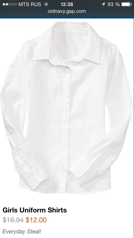 Размерность школьной формы Old navy
