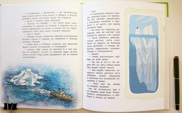 Дядя Кузя объясняет различные явления природы, а Чевостик не только задает вопросы, но и выдвигает свои предположения, повторяет важную информацию, резюмирует. Эти герои и их забавные диалоги делают книгу живой и интересной, что так выгодно отличает ее от скучного учебника. А еще здесь на каждой странице есть иллюстрации или схемы, что, конечно, облегчает знакомство с нашей планетой.