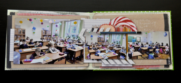 Ну что ж:) Пришла пора использовать свои возможности и для собственных детей:) Вместо страшных официальных школьных виньеток я сделала книгу сама. Формат 18*13, в твердой обложке. Смотрится шикарно и проживет точно дольше, чем отдельные фотографии. Остальным родителям тоже понравилось:)