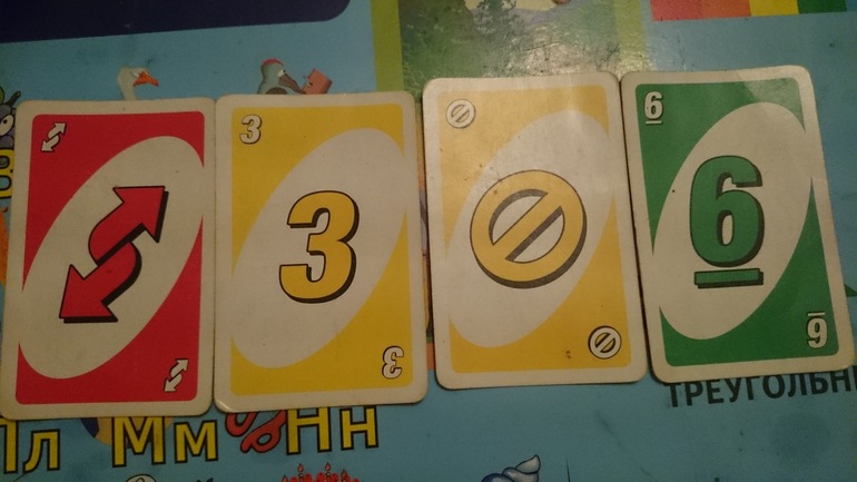 Имеем 5 летнего мальчика и карточки игры УНО, оставшиеся на руках.