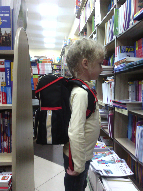 Канцелярские принадлежности и прочие нужности для наших детишекСходили с дочей в магазин померить ранцы, расцветки которую выбрала доча небыло мерила аналогичный мальчуковый, вот результат. Не маловат ли?