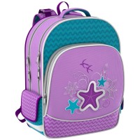 Нашла такой же только мальчуковый,но все видно. Видела такой в магазине, подходит от роста 115см смотрится не громозко. Смотрите по ширине плеч, измерьте ребенка, здесь указано 27 см. Я вырезала из бумаги(можно газеты) длину и ширину ранца и примеряла на дочу. Для худенького и маленького ребенка будет просто отлично, мы такой выбрали на 100 грамм меньше а по размеру они одинаковы, папка по трудам отлично влазит