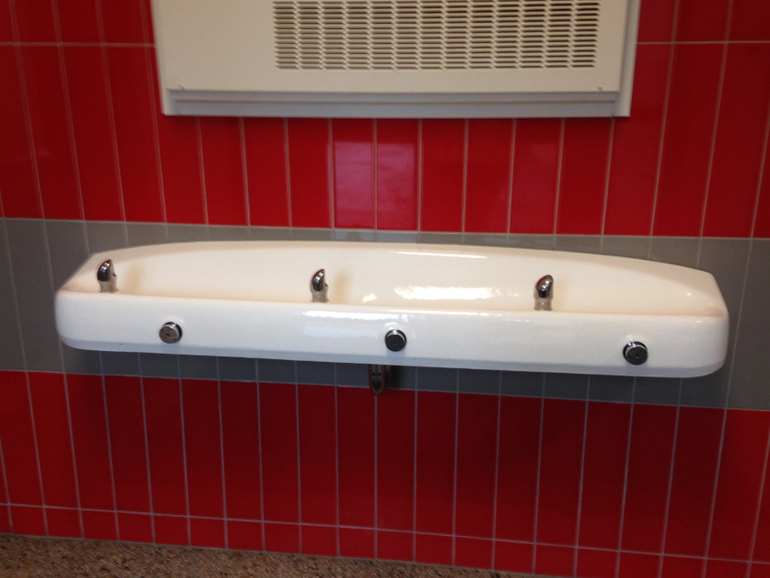 С мылом, раковинами, сушилками и зеркалами тоже все нормально. Конечно, что-то забрызгано и требует протирания.