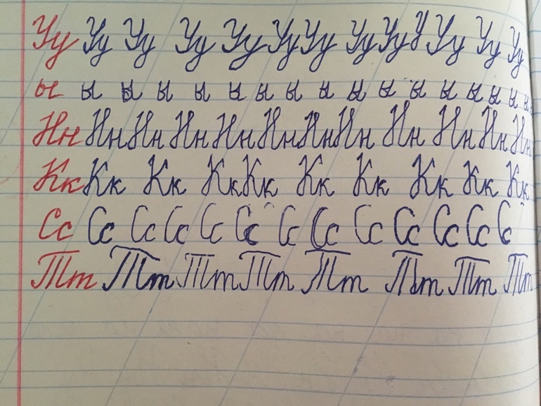 Странно, что вы сразу начали писать в такой тетрадке. Здесь сложнее наклон правильно делать. Или учителю это не важно? Просто нашему важно. Ручку смените, мажет сильно. А в целом не плохо.