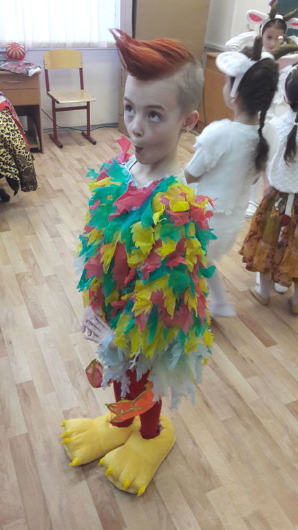 Если кто-то мне хочет написать про прическу, то не стоит. Придумать более не ее цвет наверное нельзя. Не идет, некрасиво, мне не нравится, но времени сделать верх костюма у меня совсем не было. Поэтому весь след. месяц спонсор нашего хорошего настроения - костюм петуха;)))