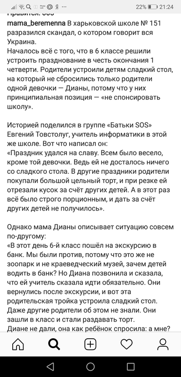 Родительский комитет. Поборы в школах?В Харьковской общеобразовательной школе №151 разгорелся скандал из-за тортика по случаю окончания четверти. Об этом сообщают учителя и родители школьников в Facebook.