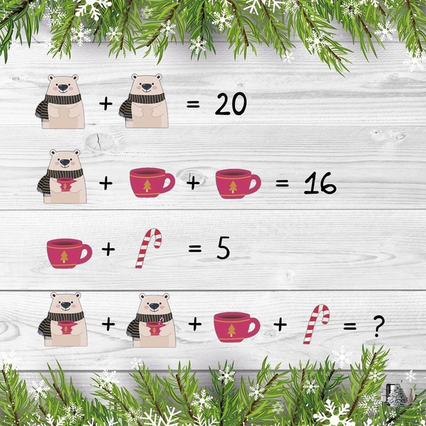 Дети уже спят, завтра покажу. Мы с мужем (кандидат физмат наук) честно посчитали, что 25😀 А потом уже я комментарии посмотрела, тогда дошло :) Списываю на то, что три бокала вина пропустили:) А так подобные задачи мои в Узоровой решали, в олимпиадных задачах. Там вместо предметов буквы. Но тут весь кайф именно в дополнительных чашках и леденце. Классная задача!