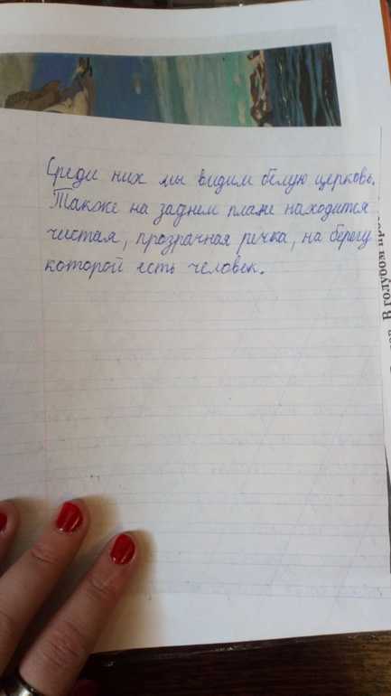 Звонит и спрашивает: мам, так писать про людей, которых я не вижу? Нет? А оценку не снизят? А если все напишут, как мальчик сказал, а я один этих людей не нашёл? Давай лучше и я напишу, что на берегу рыболов. Ну, или лодочник. Ну или просто тётя гуляет. "