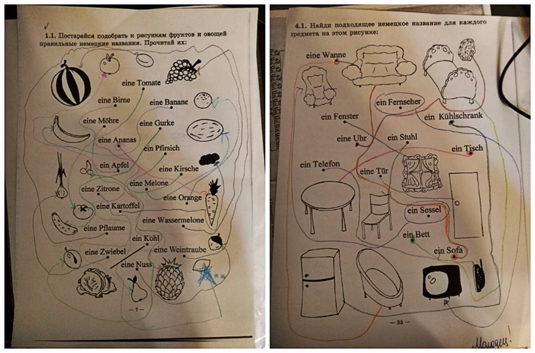 Замечания от репетитора были в формате "сегодня не в духе, не хотел зверей показывать / песенка про мышку не далась/ повторите овощи, попробуем в следующий раз типа суп сварить". Все письмо, пока не научился писать, сводилось к таким заданиям
