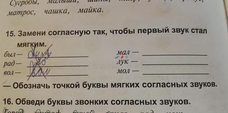 В задании опечатка, я думаю. Надо поменять гласную, чтобы первая согласная в слове стала мягкой.