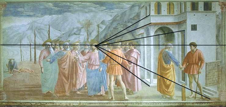 Как вычленена точка схода? Почему она не ближе и не дальше на линии горизонта? По какому принципу проведены линии, если учесть, что точка не задана заранее, а нам нужно ее найти ?