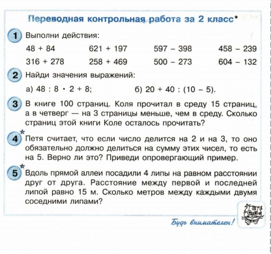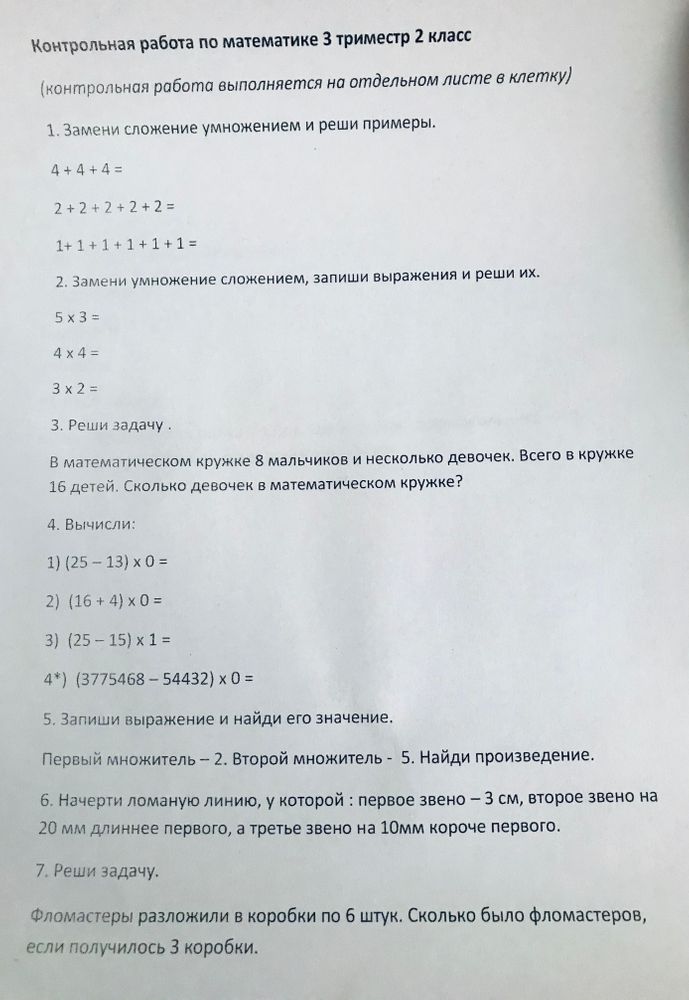 мои младшие прикреплены к заочной школе. Три раза в год делаем триместровые контрольные . Обучения в этой школе нет. Но я именно такую и искала. Чтобы ребята занимались по своей программе . Поэтому в нашем случае это самый подходящий вариант . Но!! Вот задание по математике за третий триместр 2 класса. И у меня вопрос . Это же только в нашей заочной школе такой уровень программы по математике во 2 классе ? Дети так и не поняли до конца, что это контрольная .