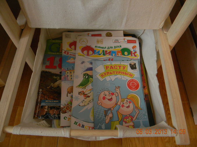 Сейчас храним журналы так (и часть игрушек) - кстати ,тоже удобная штука