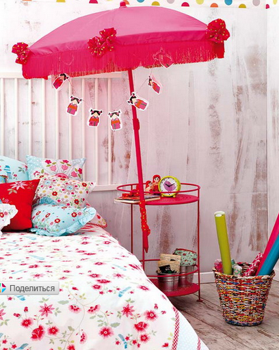 Мама - рукодельницаМы будем мастерить яркий зонтик для прикроватного столика. Подобные зонтики устанавливают в саду или на террасе, чтобы спрятаться от летнего зноя. А в комнате малышки такой декор станет необычным цветовым акцентом, добавляя уюта и неотразимого очарования, которое так привлекает девочек.