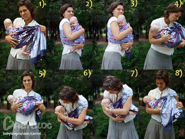 2) Ребенок на руках и в слинге должен лежать одинаково.