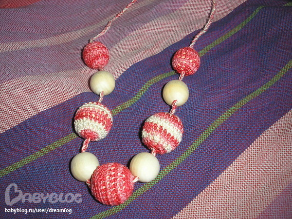АксессуарыМысль сделать слингобусы сомой возникла давно. Купила и нитки и бусины (правда, мелких так и не нашла, пришлось крупные брать). Ну и как часто бывает, до дела руки так и не доходили) А тут в связи с потеплением, вышли гулять в слинге без куртки, и доча измусолила всю мою цепочку и крестик. Это и сподвигло на скорейшее рукоделие. И вот что получилось: