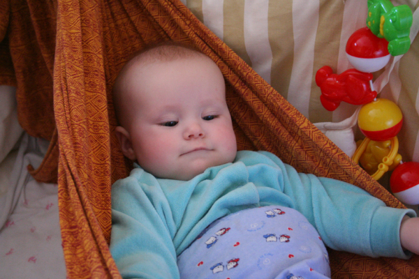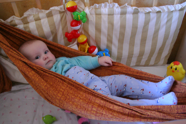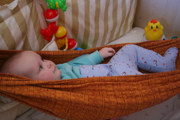 мы с ребенком такой гамак делали, когда в больницу попали, оченьь его успокаивало)