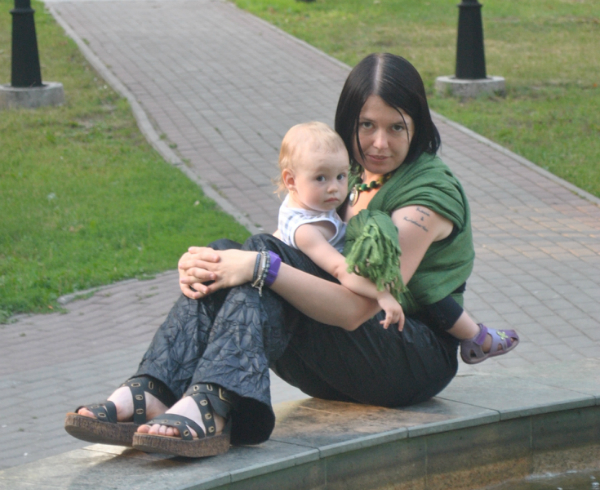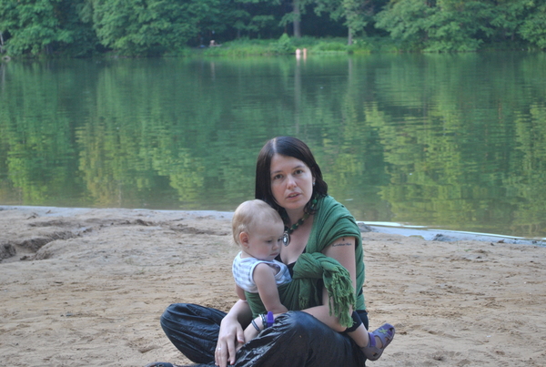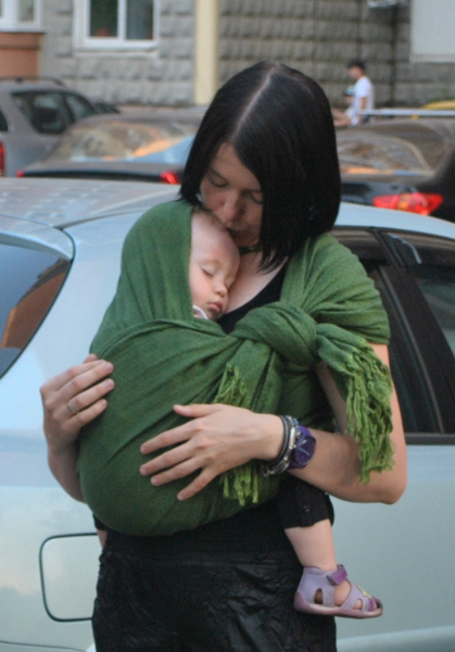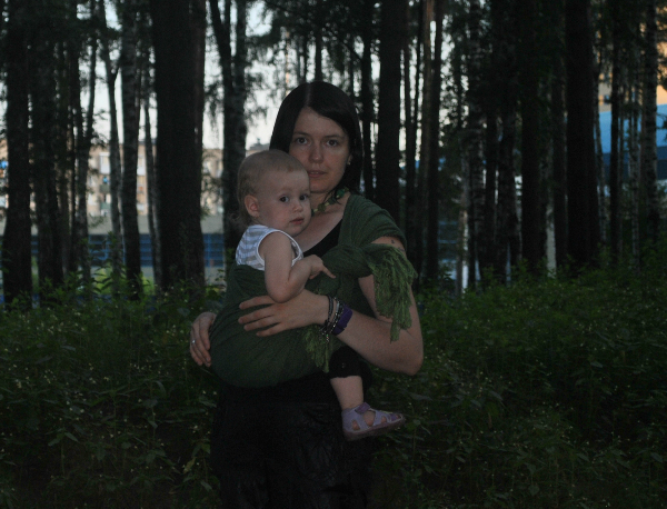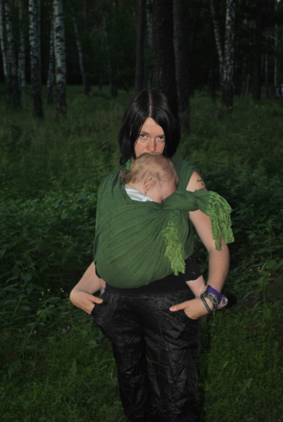 Он мягкий и нежный на ощупь даже до стирки, но мотается слегка бумажно и не очень экономно, зато держит 10,5 кг пупсятины на отлично. После стирки в машинке получаешь увлекательное занятие - расчесывание бахромы :) А намотав его, вдруг обретаешь какое-то эльфийское настроение, хочется, чтоб все вокруг срочно позеленело и также радовало глаз настойчивой свежестью.