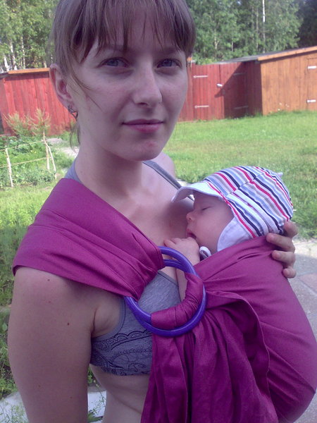 Да, а вчера так ещё правильнее делала, кольца выше и расправлено все. Правда вчера была колыбелька, может в ней просто тяжелее. А слинг это от наших мастериц, «Югорские слинги».