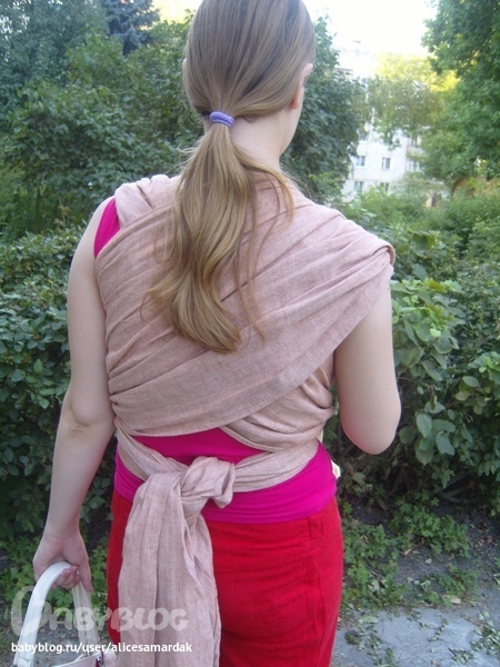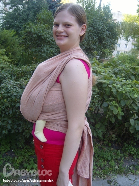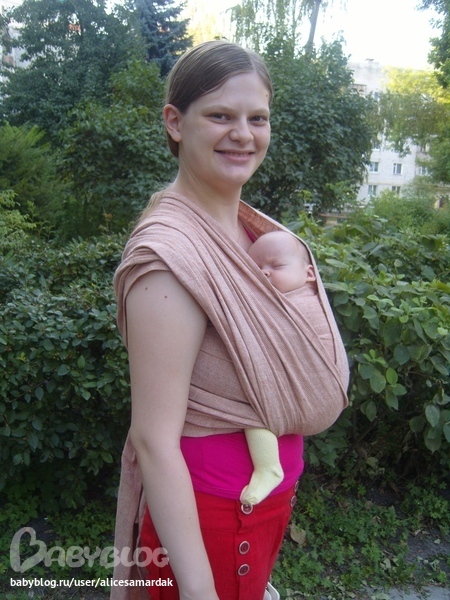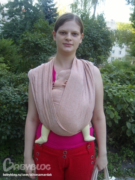Учимся носитьОцените пожалуйста нашу первую намотку. мы так уже гуляли, дочка уснула пока я еще мотала. из ошибок увидела только лишнюю ткань под шейкой. хочется услышать более опытных мам)