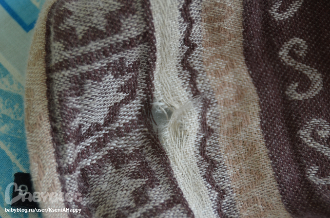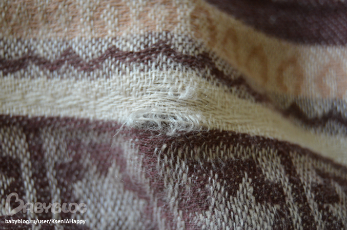 присмотрелась еще раз, мне кажется, это производственный брак. Нити только поперечные протерлись, если б вы его зацепили чем-то, выглядело б по другому. Со старшим у меня кроме шарфа был только один шарф - Зара. Ох как мы ее поносили, и стирала на обычной стирке, а ей хоть бы что, вообще вид не потеряла.