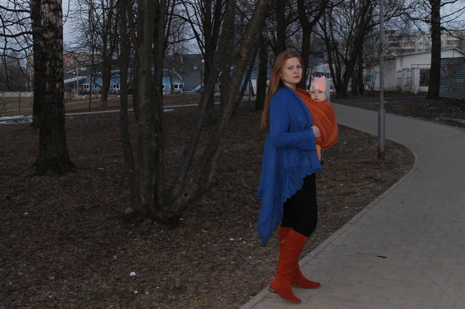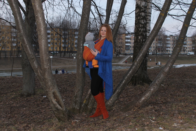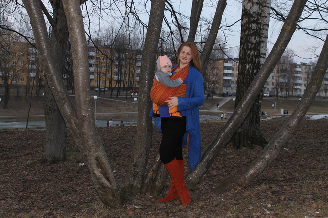 Акции и конкурсыХочу познакомиться и показать наше оранжевое счастье!Наконец-то дождались теплых дней,т.к. скрывать такую красоту под слингокурткой не хотелось...Наш парадно-выходной любимец- Ellevill Zara Curry...Одним взглядом на него поднимается настроение! Тонкий,но при этом отлично мотается и держит!Справиться с этим шарфиком даже новичок!С ним всегда чувствуешь себя яркой,позитивной!Сынулька у меня очень уж серьезным получился)))Снимал муж в вечернее время,так что цвет реальный!