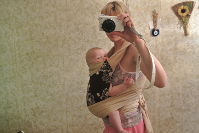 Сегодня попыталась намотать и скрестить лямки на попе, посмотрите правильно ли я сделала, правильно ли сидит малыш и может нужно спинку подогнуть на один подворот чтобы она стала короче?