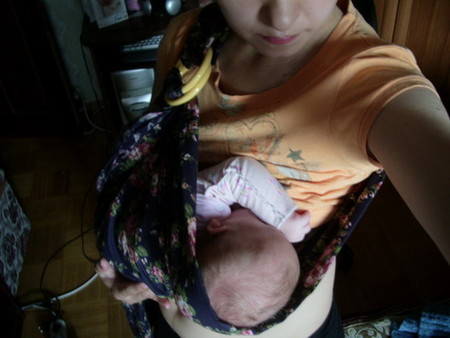 Слинг с кольцамиНикак мы не можем освоить слинг - а так хочется! Начинаю помещать в него свою Соньку - она начинает волноваться, видимо потому что грудь рядом. Я ей пытаюсь грудь дать - но как-то это в слинге неудобно выходит - во-первых Сонька вся изгибается, во-вторых, грудь приходиться куда-то оттягивать в сторону и вообще она вытягивается, в-третьих, Соньке грудью носик почему-то закрывается в слинге - приходится опять же бедную мою грудь оттягивать куда-то постоянно - какая тут нафиг свобода передвижения? Нам 1,5 месяца соответственно, ездим в позиции "колыбелька"