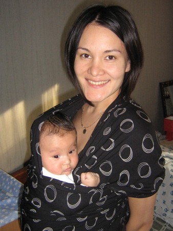 Слинг-шарфом мы еще не пользовались, но я уверенна что это очень удобно и уютно) хотя вру....однажды мотали на себя обычную ткань, примерно вот так