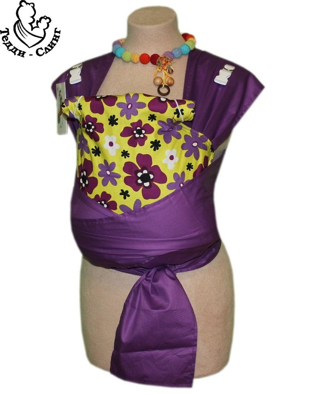 а учитывая мою страсть к фиолетовому...но как оказалось он уже был забронирован..а ткани желтой уже не было в наличии...но мне было предложена не менее красивая тканюшка для спинки..более того..с оговоркой на маму-слоненка лямки , специально для меня были сшиты длиннее, чем в варианте стандарт.