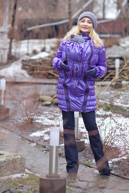 Кроме ношения со слингом, так же их можно носить во время беременности или просто как обычную куртку. "Гусеничный" дизайн для создания силуэта, отдельная манишка для мамы, съемный капюшон для малыша - все продумано для красоты и удобства.