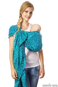 Ткань для слингов соткана из 100% хлопка. Ткань жаккардового плетения отлично подходит для ношения детей с рождения до 2-3 лет. Она тянется по диагонали, за счет чего слинг плотно облегает маму и малыша, и намотка не ослабевает от длительного ношения.