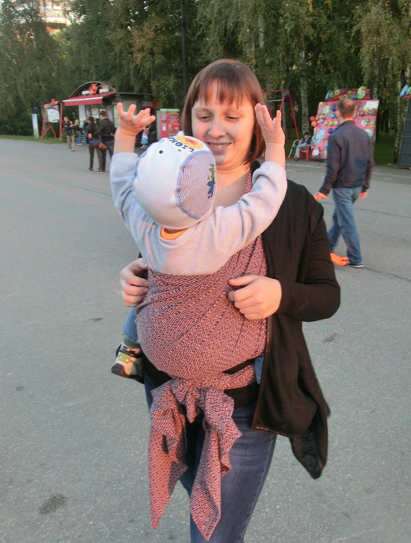 Шарфянка (отзывы по шарфам)Сегодня к нам в гости приехал Харти. Это первый харти, который я мерила) До дома мы его даже не донесли, сразу решили потестировать)) Шарфик очень ТТХ-тый. Мотается сам, на плечах лежит очень мягко, держит железно, несмотря на шелк в составе. Максюня в нем и покатался, и поспал. В общей сложности пронесла сегодня часов 5 его - спина молчит) Ну и фото