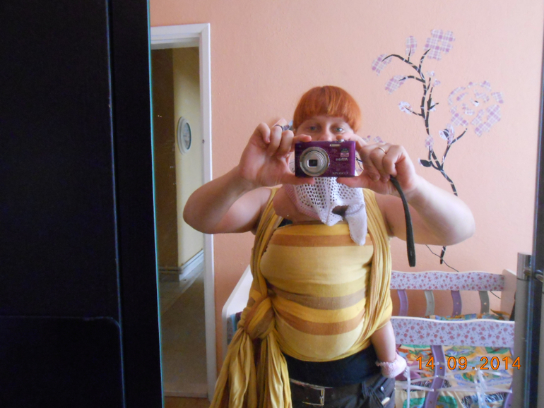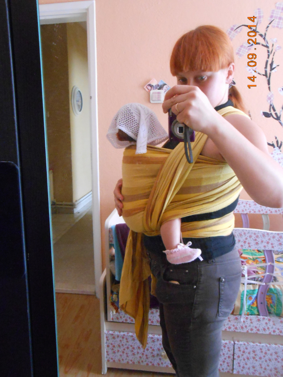 Учимся носитьПривет! Вот такой вариант видела в сети, попробовала. Намоталось очень удобно, на прогулке не скользило, по крайней мере не больше, чем это иногда бывает в обычном КНК. Тут же легко подтянулось и больше вопросов не возникло. Малышка 6.500 примерно. Это вариант? Или так делать не стоит по каким-то причинам? Фото далее. И да, привет Кристине))) Полюбился!