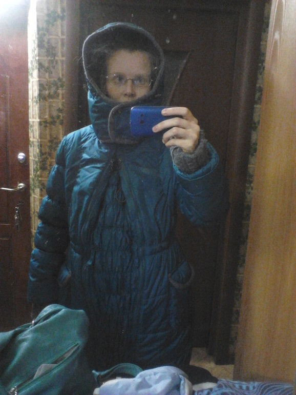 Вчера было -8 и мне было жарко сильно. В магазинах я её просто с себя снимаю, не могу находиться в ней.