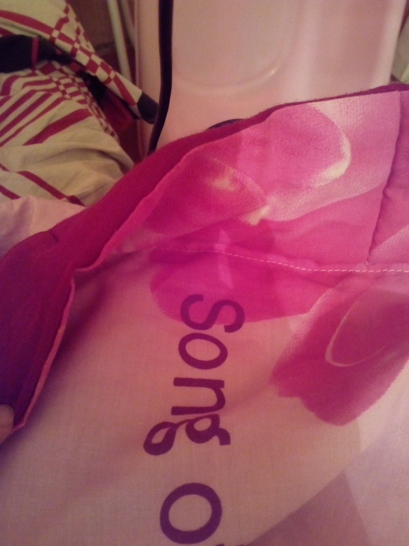 Вот и думаю, как исправить - либо вытащить синтепон из верхнего борта в том участке, где упирается в кольца, либо полностью убрать синтепон из бортов и выпороть марлевку (нам к тому же очень жарко в слинге)?