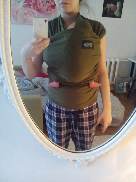 Учимся носитьМалышу 10 дней, решила попробовать одеть слинг, оцените пожалуйста намотку и положение. Извиняюсь за качество фото